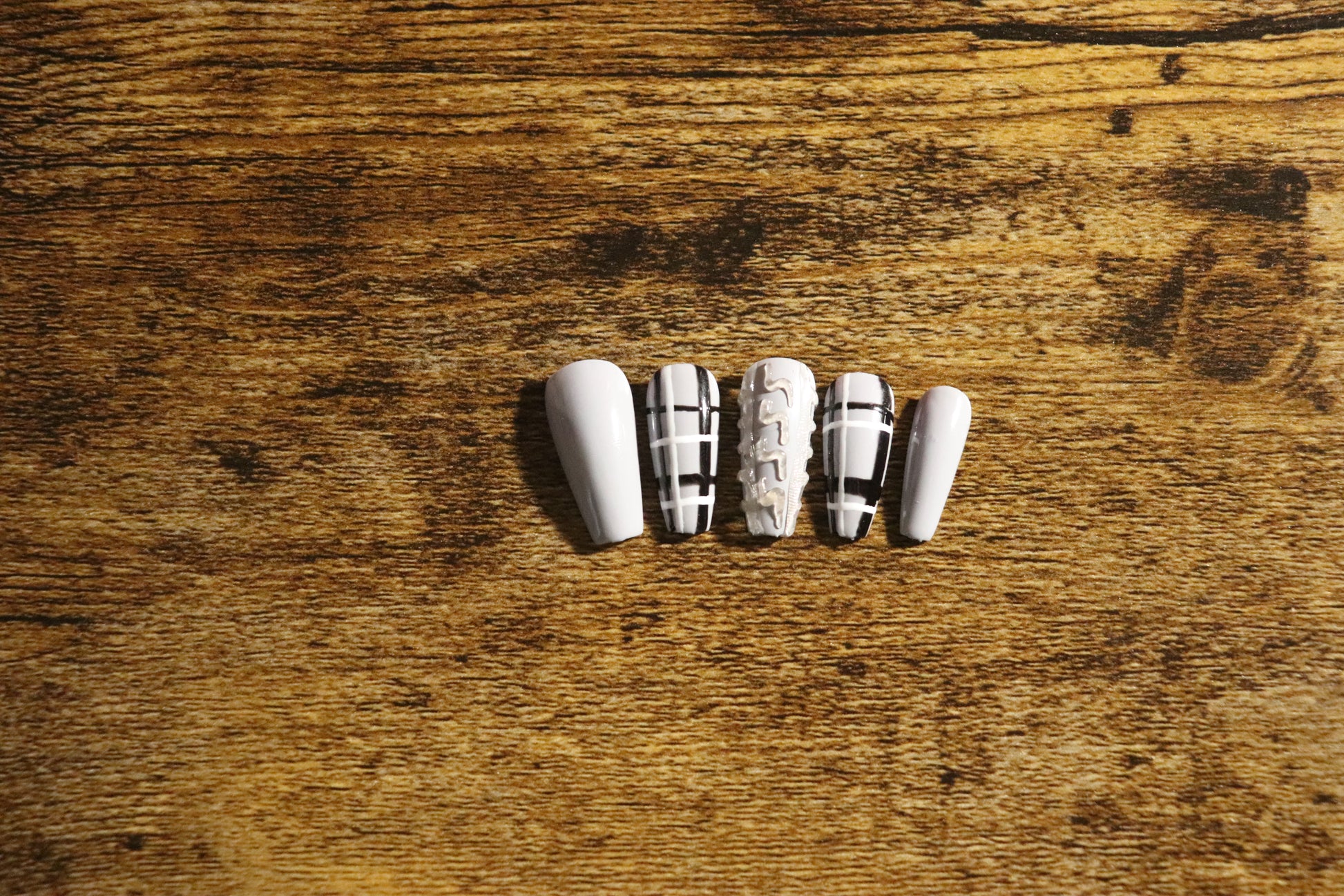 Wrap your fingertips in seasonal charm with Crisp and Cozy, the ultimate fall-inspired press-on nail set. Featuring a blend of soft white tones, chic black plaid accents, and a cozy cable-knit texture, this design captures the essence of crisp autumn days and warm knits. Perfect for pumpkin patch visits, coffee dates, or cuddling up fireside, Crisp and Cozy brings cozy sophistication to any fall look — no layers required